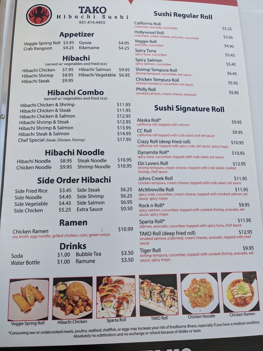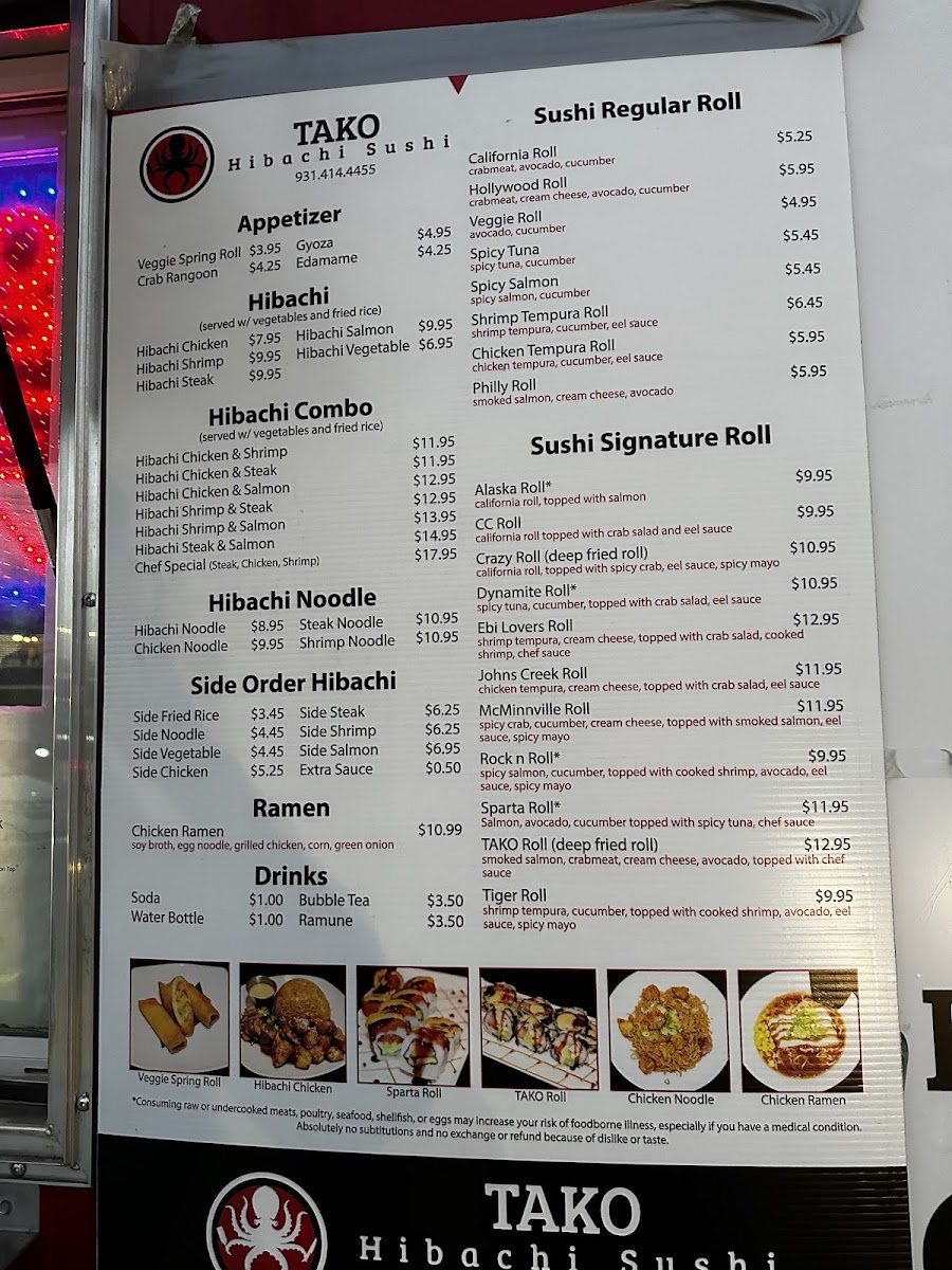 If you’re in the mood for something fresh, flavorful, and full of flair, the Tako Hibachi & Sushi Menu is just what you need. Located at 509 Sparta St, McMinnville, TN, this spot offers a mix of hibachi-style dishes and sushi rolls that are as delicious as they are exciting. Whether you’re craving a sizzling hibachi grill plate or a delicate sushi roll, the menu has something to satisfy every appetite. For hibachi lovers, there are plenty of grilled meats, seafood, and veggies, each cooked right in front of you to perfection. And if sushi is what you're after, you’ll find everything from classic rolls to signature creations, each prepared with fresh ingredients. The combination of bold flavors and creative dishes makes the dining experience here one to remember.